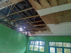 “Kondisi sekolah sekarang memang tidak layak di tempati. Yang jadi kekhawatiran kami jangan sampai anak-anak tertimpa dengan bangunan sekolah itu. Bayangkan saja ketika anak-anak sedang belajar kemudian turun hujan disertai angin kencang, mereka langsung dipulangkan karena plafon dan atap gedung terlepas begitu saja.”begitu katanya.